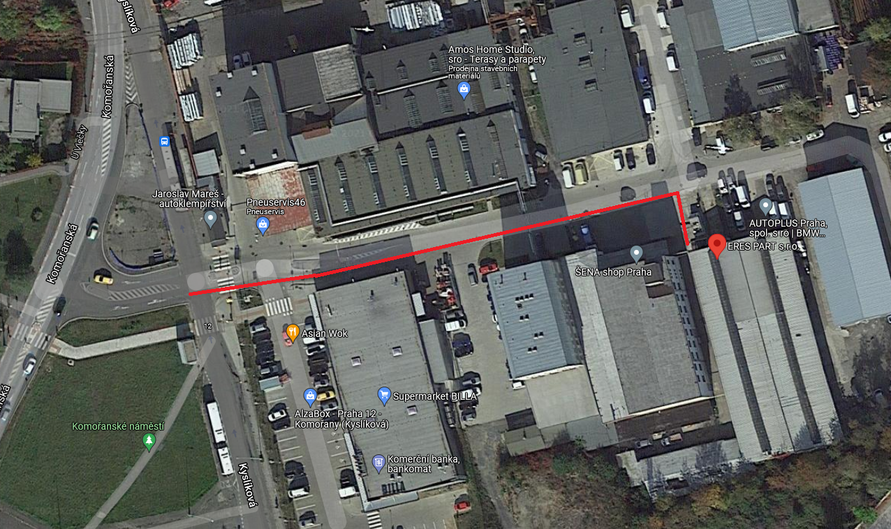 1. Přijeďte na adresu Kyslíková 1984/4, Praha, před Vámi bude průmyslový areál, ve kterém sídlíme